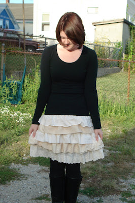 Meet: my white hippie skirt, circa my sophomore year of college. While classic in its flowy, summer-ness, this skirt doesn't do me any favors. The length is all wrong - cutting across the widest part of my calves, which (thanks to Tim Gunn's Guide to Style!) I learned is a big no-no. It's been in my closet for years, and I can count the number of times I've worn it on one hand. I haven't been able to let it go, either. There was potential here...